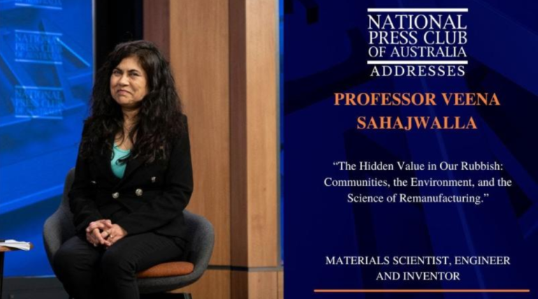 Hub leader Prof Veena Sahajwalla AO has given an address to the National Press Club of Australia titled "The Hidden Value in Our Rubbish: Communities, the Environment, and the Science of Remanufacturing."